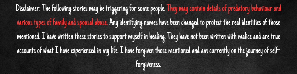 I was born in 1986 to a mother who was two months shy of being seventeen and a father who had just turned twenty. I think it is normal not to recall much of your first years of life. I know that there are people out there who can, which is amazing! Unfortunately, my brain only holds in things that I can later use to defend myself – Hooray for trauma responses! <insert sarcasm>. There are two specific memories that I do recall from that time, though, which I would like to include in this story.
